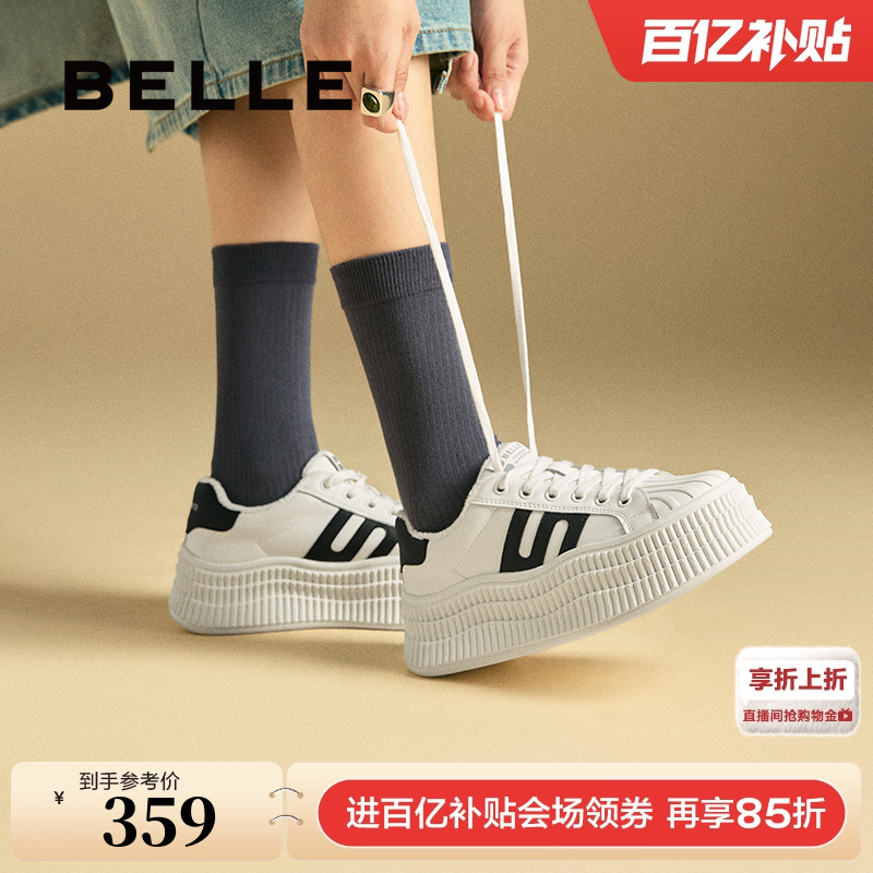 戚薇同款百丽女鞋子贝壳头厚底德训新款板鞋休闲小白鞋D2A1DAM5