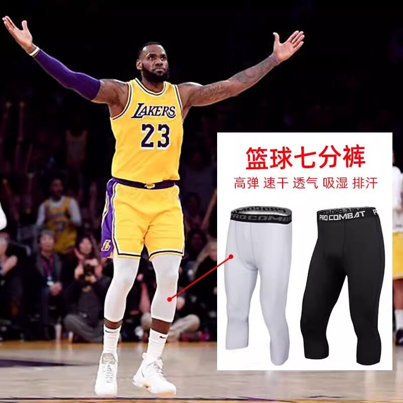 篮球防护七分裤詹姆斯运动长裤袜白色紧身护膝护具装备丝袜男加绒