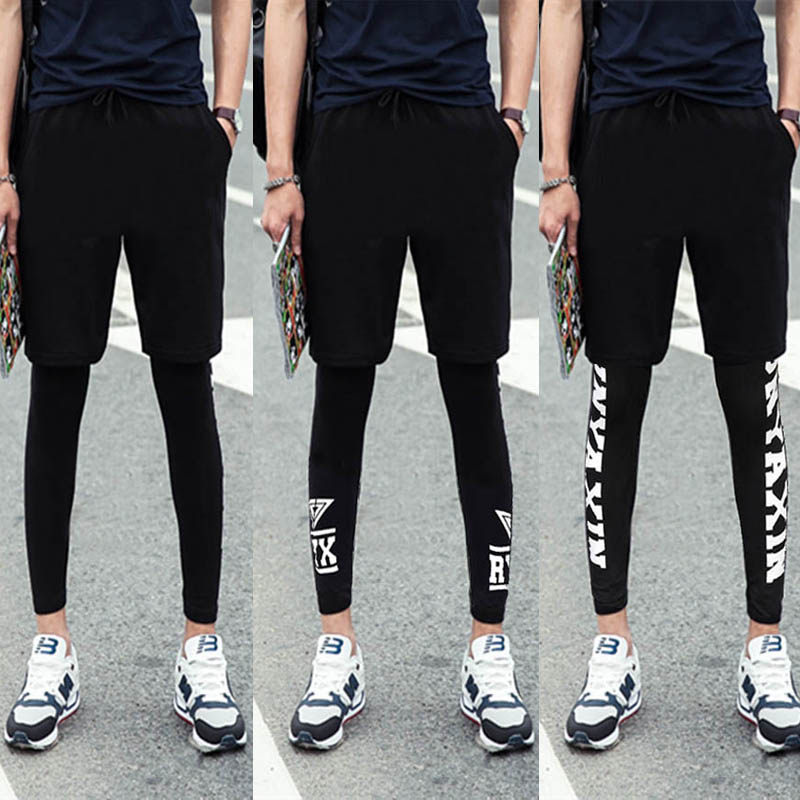 运动紧身裤男夏季薄款篮球丝袜高弹力压缩打底裤健身裤假两件短裤
