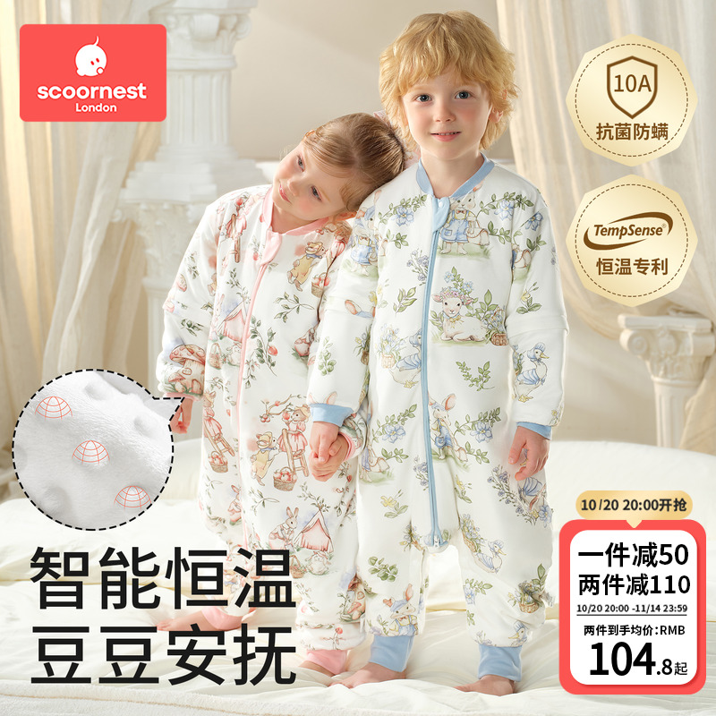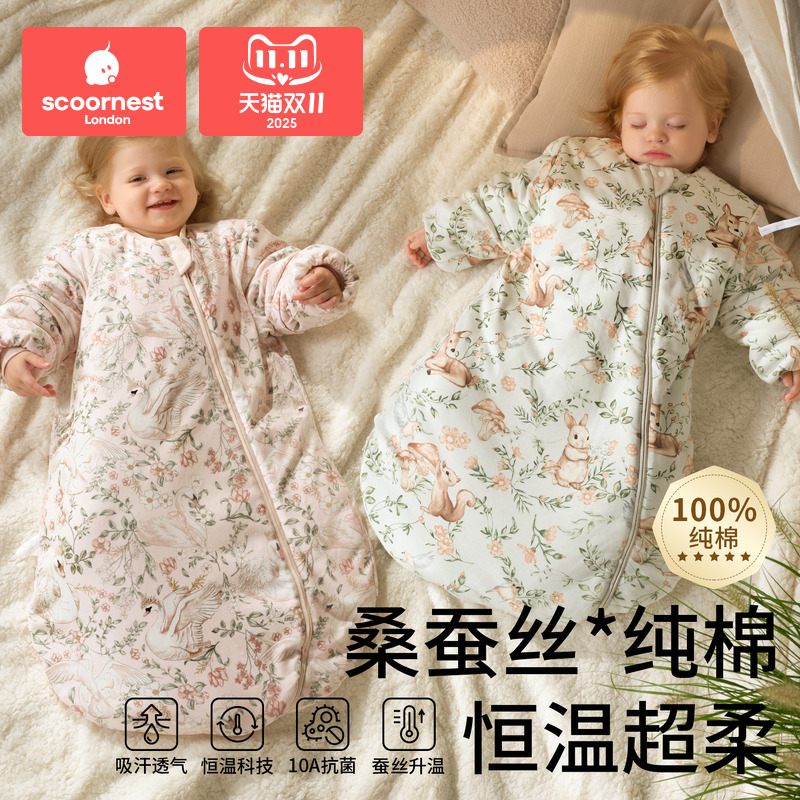 科巢婴儿睡袋春秋冬款恒温分腿睡袋桑蚕丝宝宝儿童防踢被四季通用