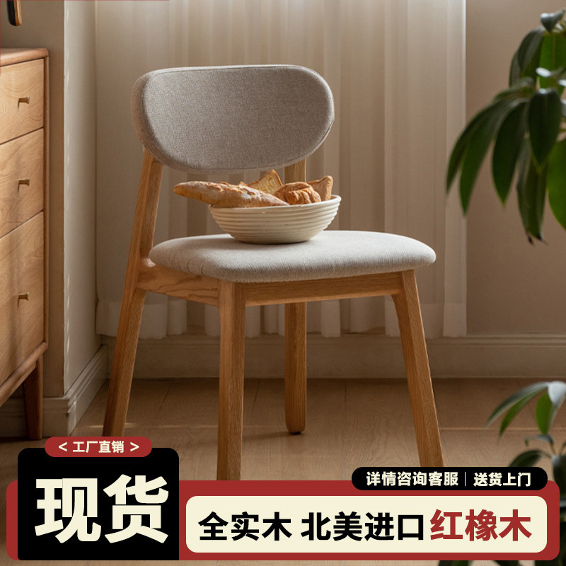 红橡木餐椅家用简约实木靠背椅北欧软包吃饭椅子电脑椅休闲办公椅