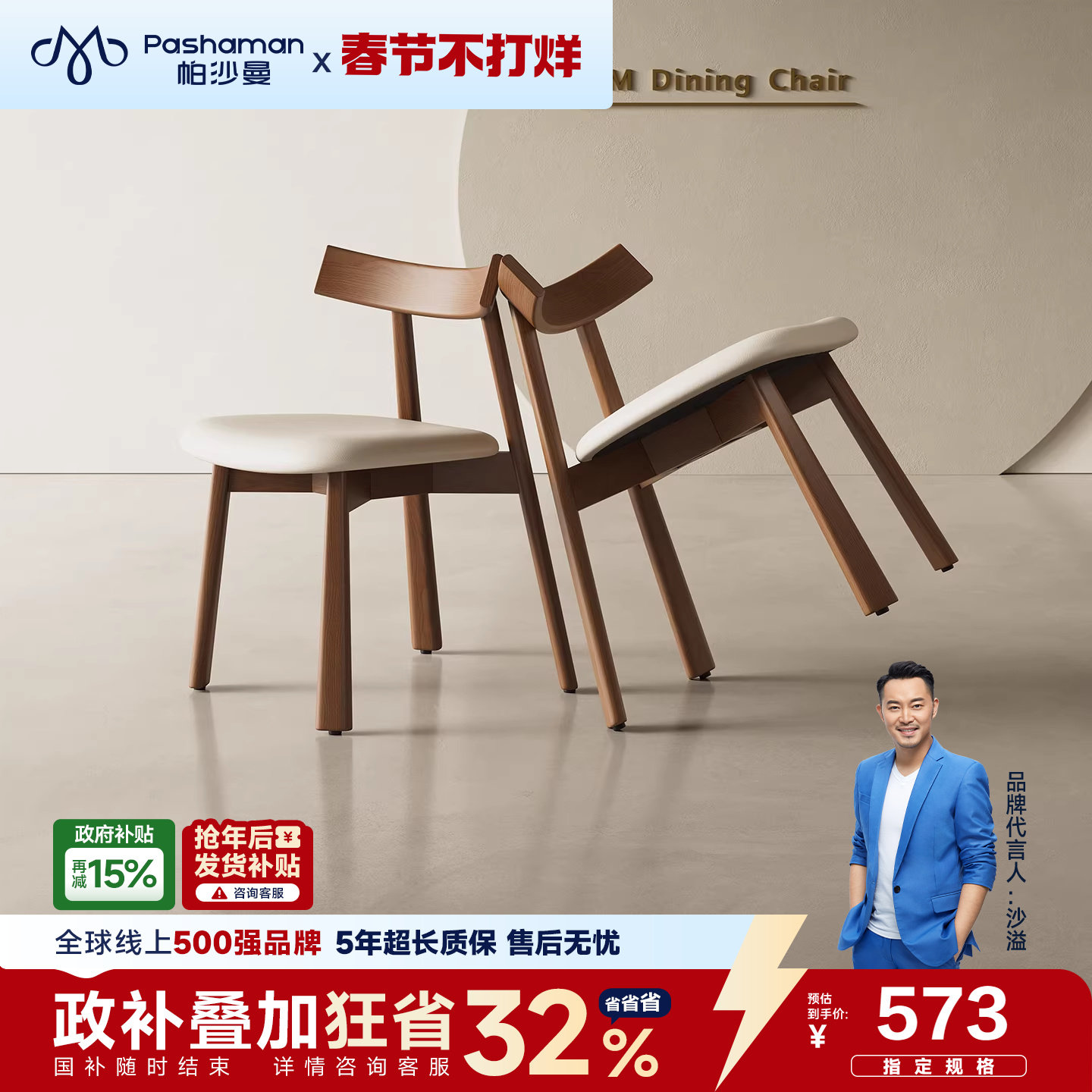 强象现代简约实木折叠餐椅大人家用餐厅椅子北欧风橡木餐椅P-003