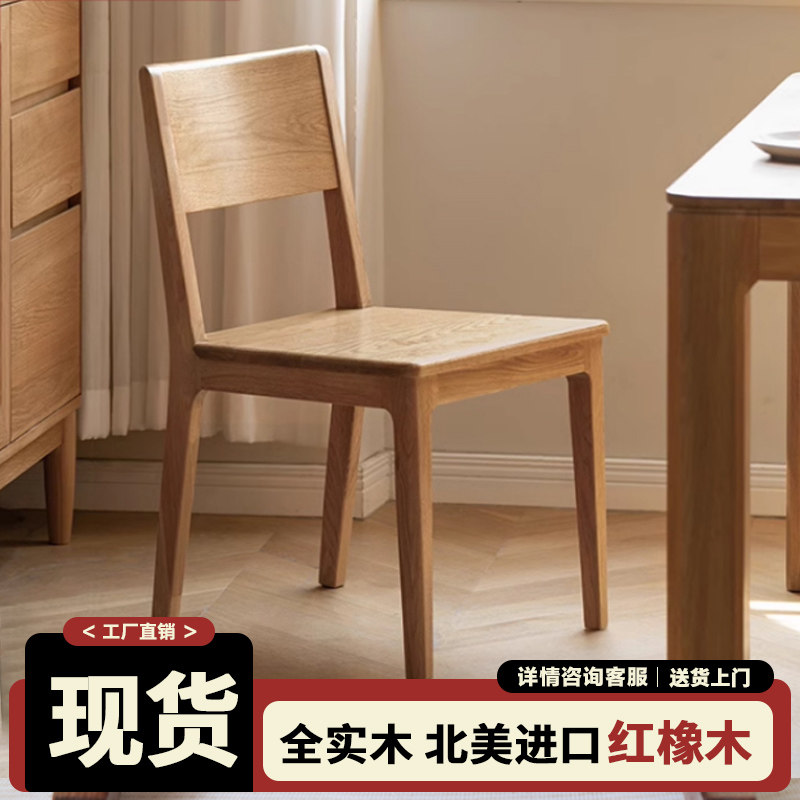 北欧全实木红橡木餐椅简约橡木靠背家用椅子凳子日式书桌椅餐桌椅
