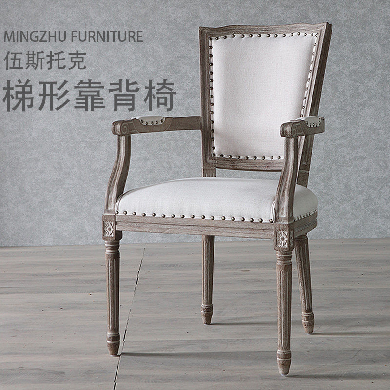 美式实木餐椅酒店做旧咖啡椅复古橡木椅子餐厅扶手靠背凳子书桌椅