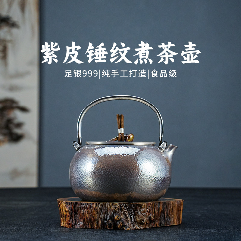 纯银时代 真锅静良足银999烧水壶家用煮茶银壶紫皮一张银打760ml