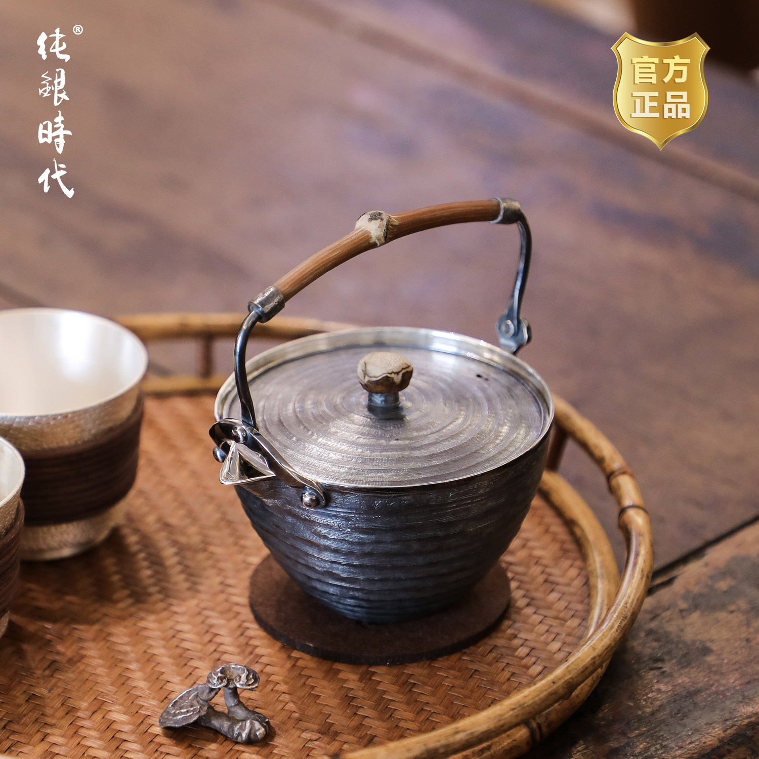 纯银时代 流光溢彩藤提梁紫皮银壶手工一张打足银999烧水壶450ml