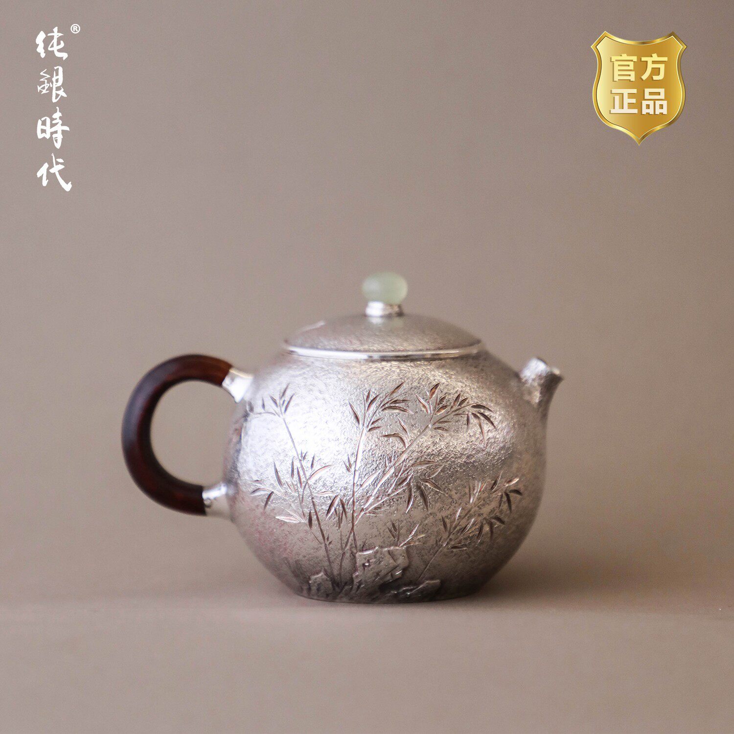 纯银时代咏竹西施纯银泡茶壶足银999家用银壶纯手工茶具送礼180ml