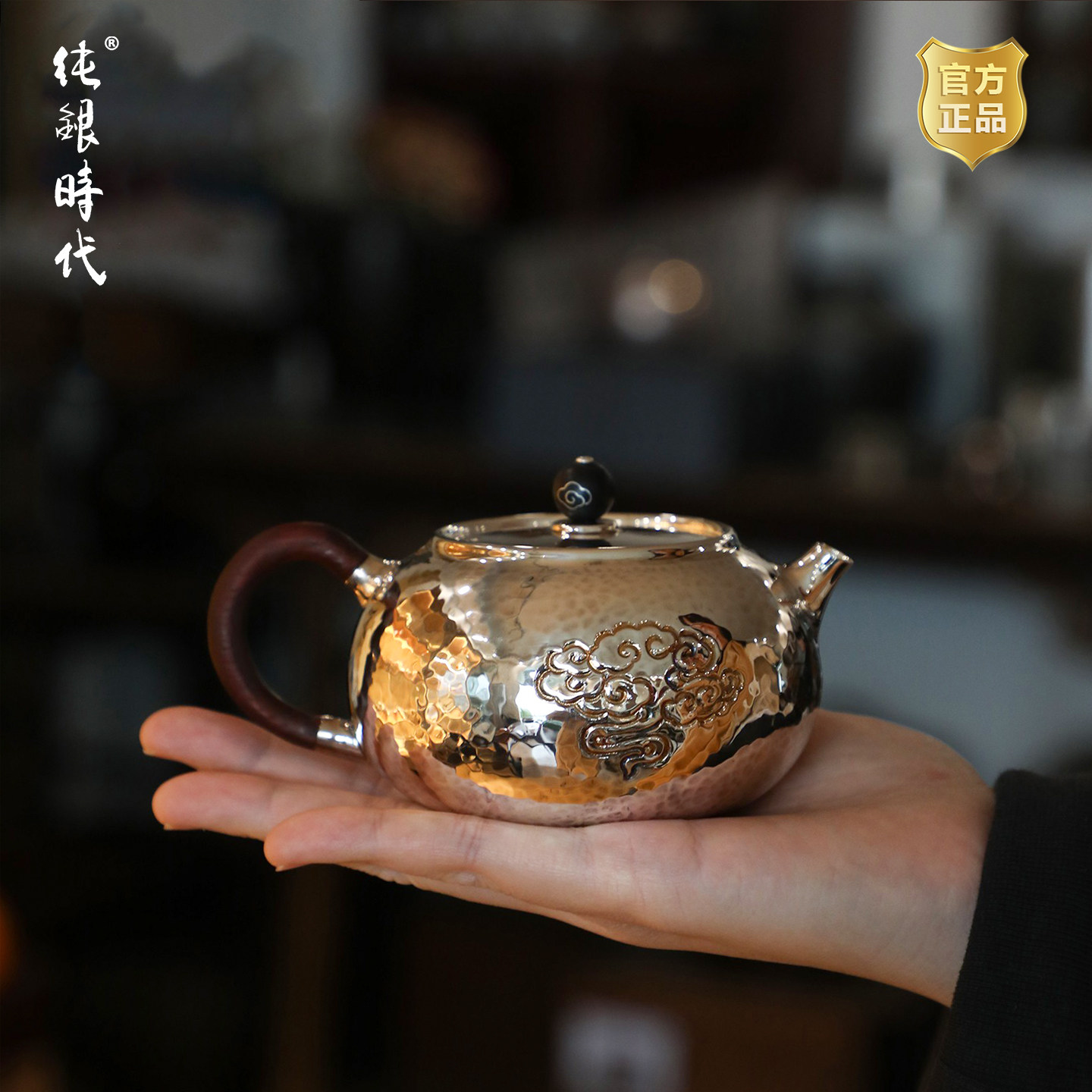 纯银时代 寸金文大师掇球泡茶壶足银999纯手工银壶小号一人饮80ml