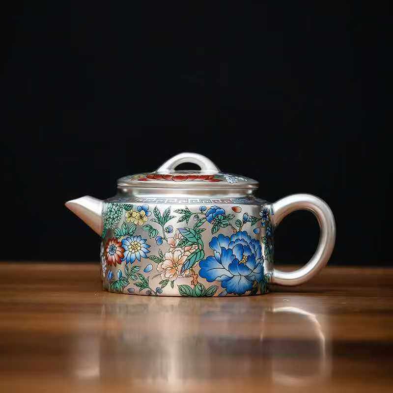 纯银时代四季海棠银壶纯银999纯手工雕刻中式泡茶壶精致送礼150ml