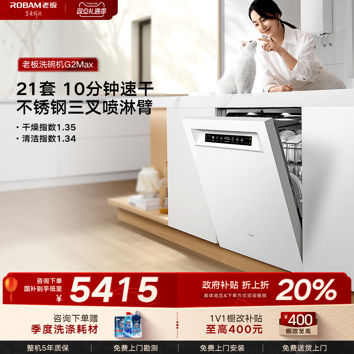 【全新升级】老板盐系G2Max洗碗机嵌入式21套自动开关门智能投放