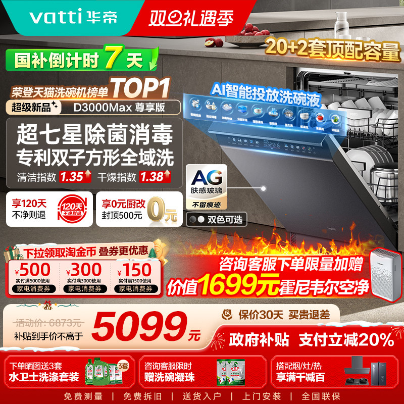 华帝双子星洗碗机嵌入式家用智能AI洗消毒柜一体20+2套洗锅大容量