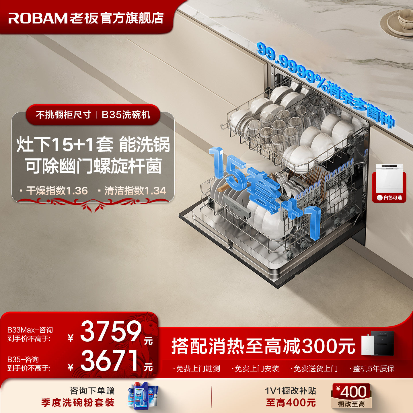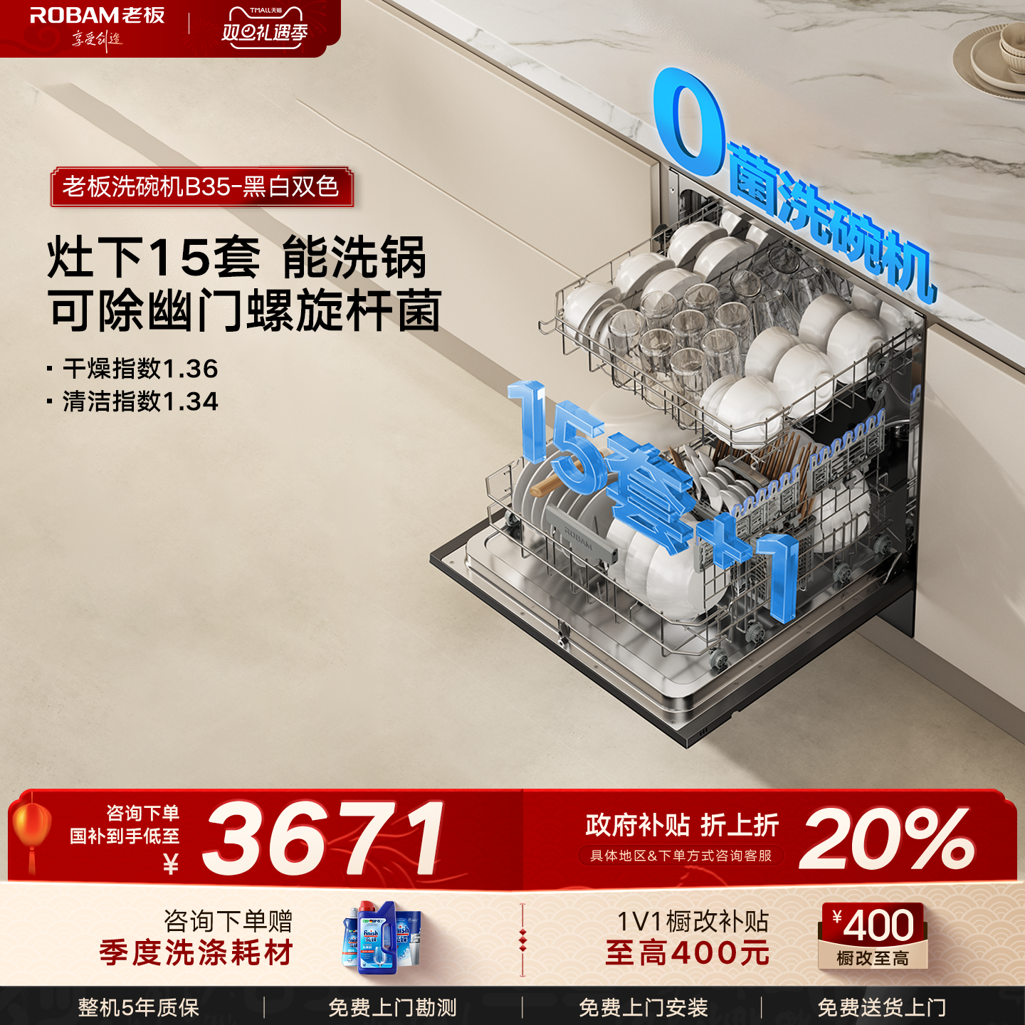 老板洗碗机嵌入式小型家用洗碗机灶下15套消毒柜一体B33MAX/B35