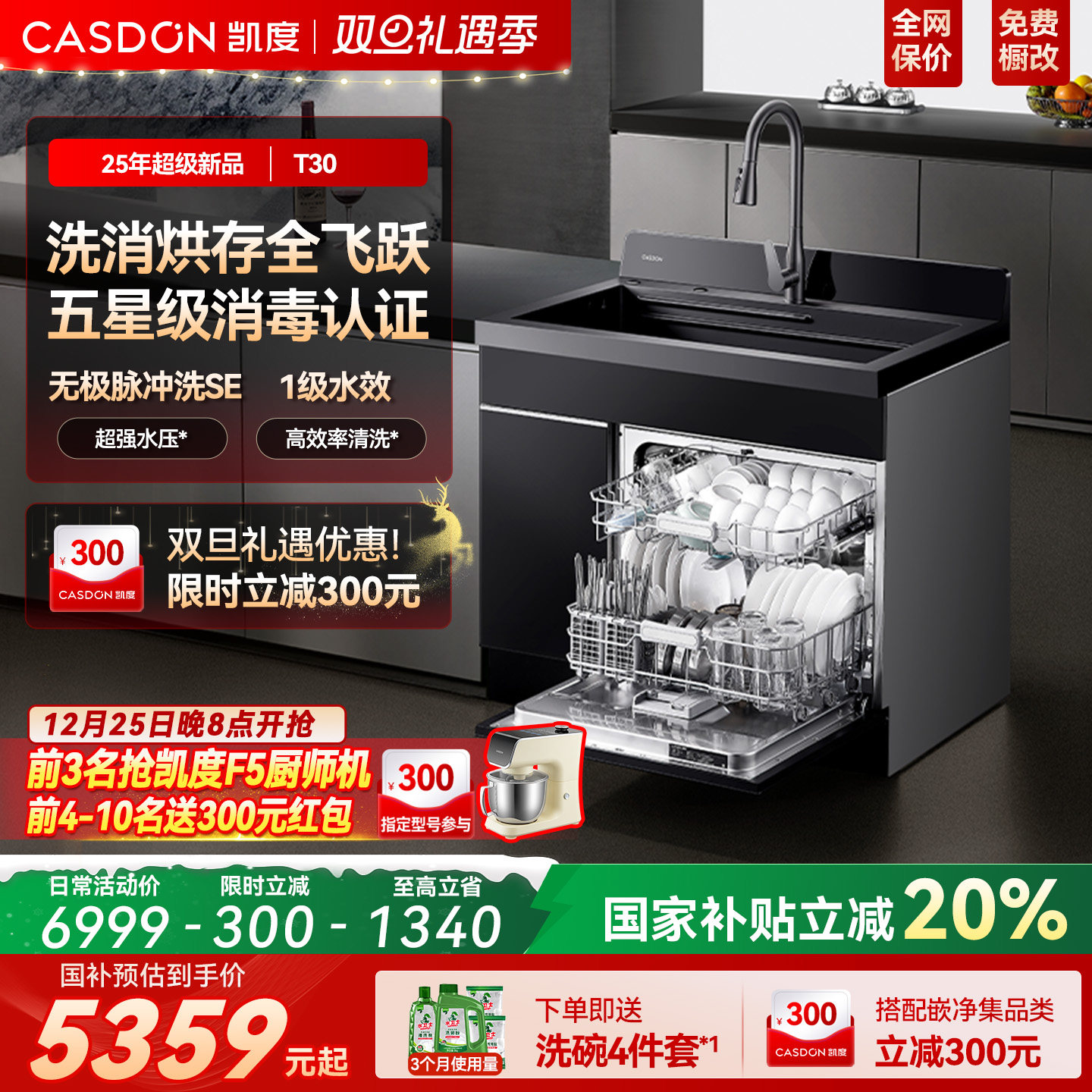 【政府补贴】凯度T30集成水槽厨房全自动家用洗碗机嵌入式洗菜盆