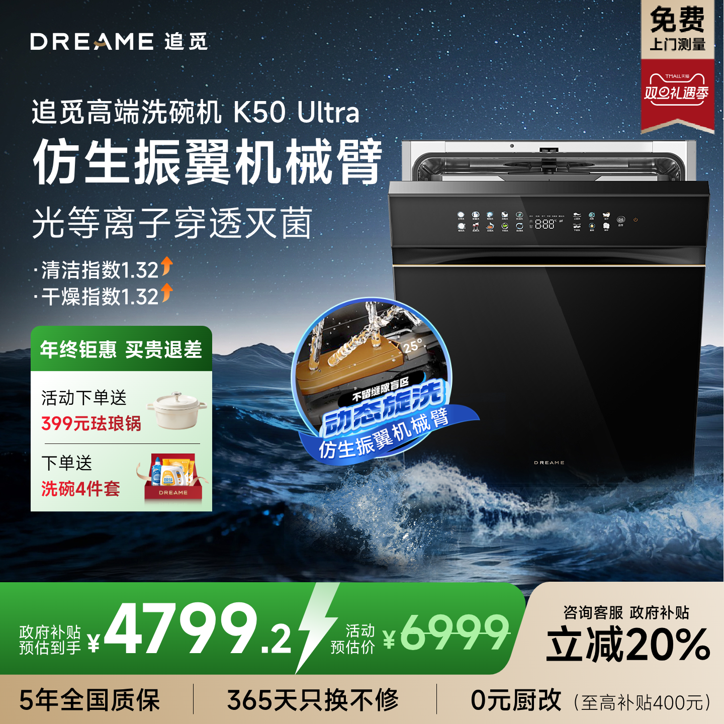 【旗舰新品】追觅振翼K50Ultra洗碗机嵌入式一体家用全自动19套+1