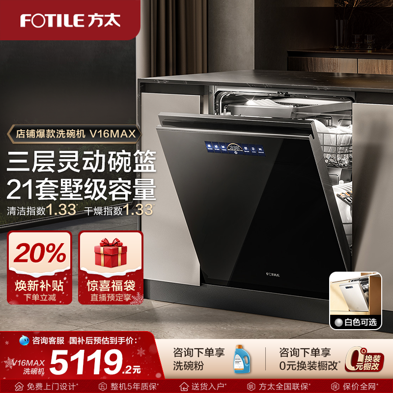 【新品】方太洗碗机嵌入式V16MAX家用自动刷碗机21套官方旗舰店