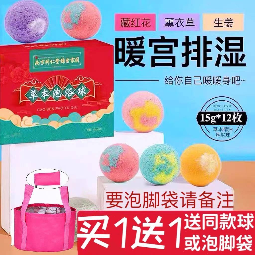 南京同仁堂艾草精油泡脚球祛湿驱寒暖宫助眠泡脚药丸暴汗足浴凝珠