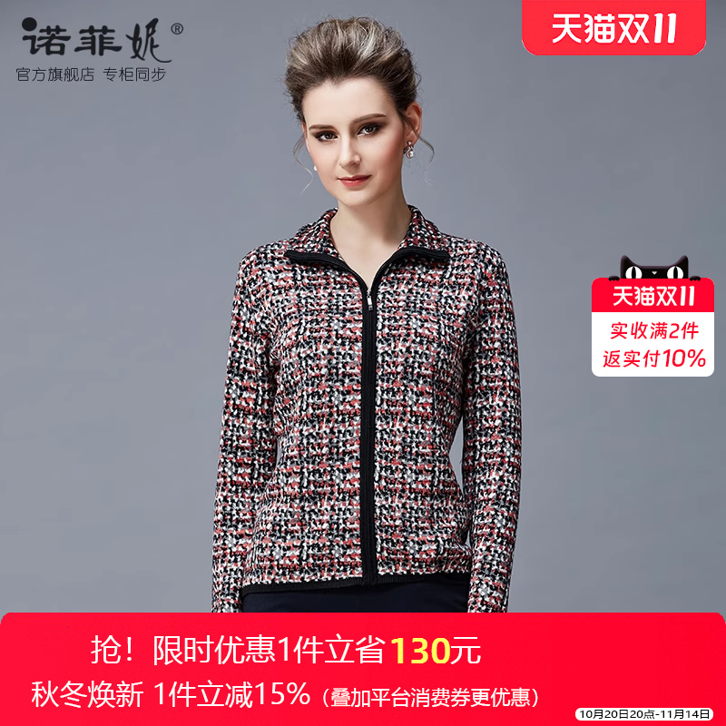喜卉中年女装春秋短款连帽外套中老年洋派针织妈妈秋装开衫外衣服