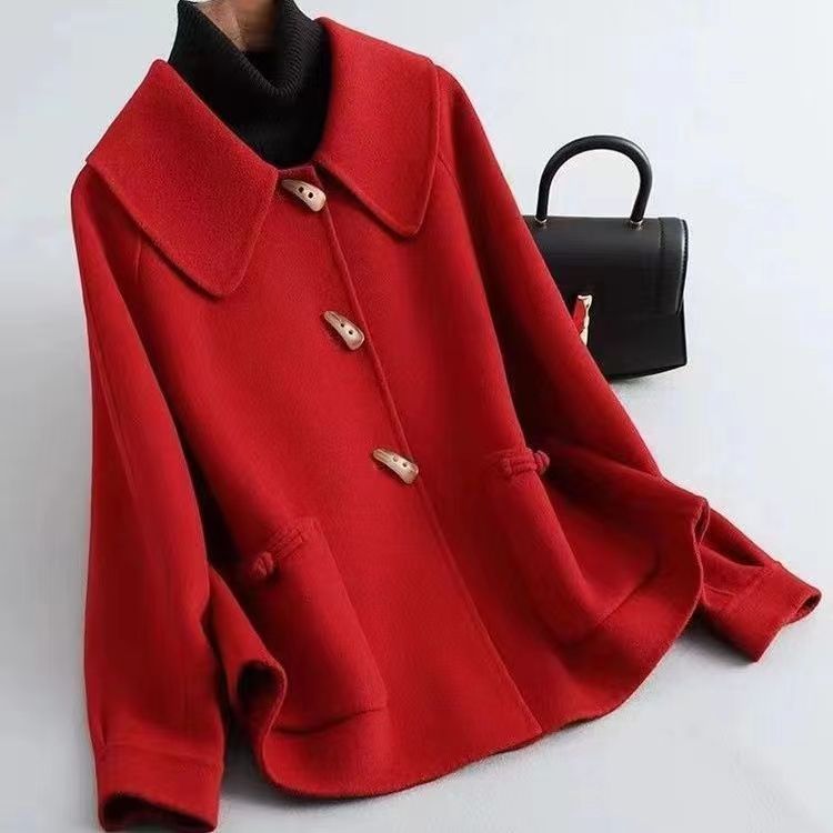 大码女装韩版短款双面绒大衣外套时尚中年女装春秋双面羊毛呢外套