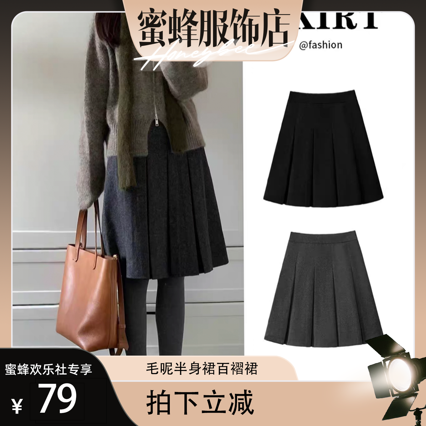 - 毛呢百褶裙