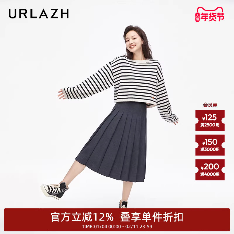 班尼路百褶半身裙女2025秋新款小个子高腰显瘦学院风中长裙A字裙Q