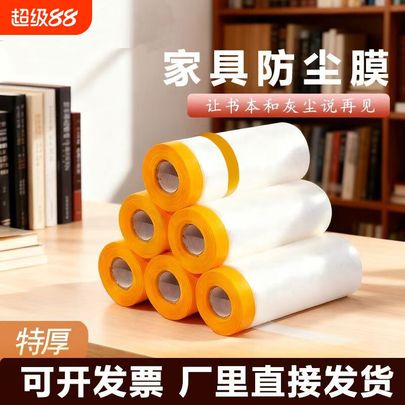 油漆遮蔽膜家具室内装修防尘膜胶带和纸美纹纸遮蔽保护膜防水灰尘