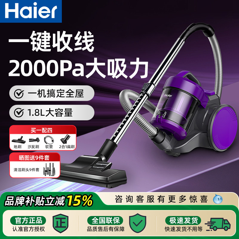 海尔吸尘器家用大吸力小型手持轻音大功率强力卧式吸尘机有线新款