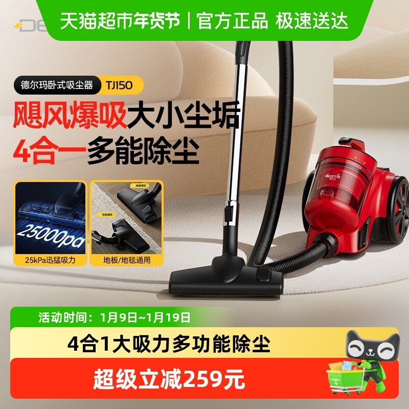 德尔玛吸尘器家用大吸力手持强力卧式吸尘机有线地毯吸猫毛TJ150
