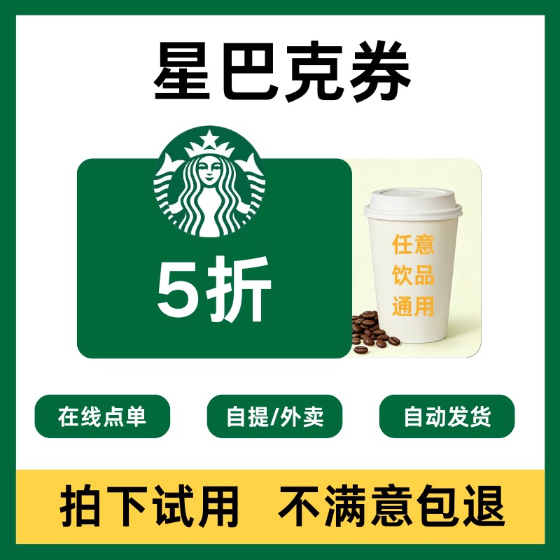 星巴克电子优惠券无门槛5折咖啡星冰乐饮品通用外卖/自提代金券