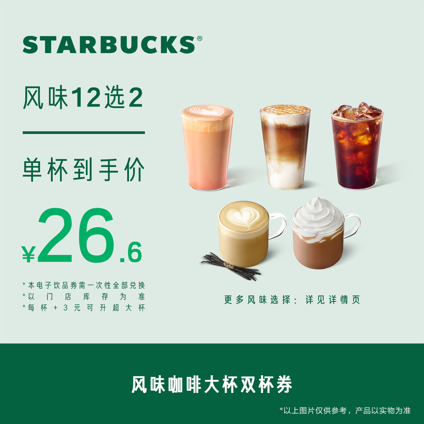 星巴克代下单双杯优惠券咖啡券电子券美式星冰乐全国通用啡快卡券