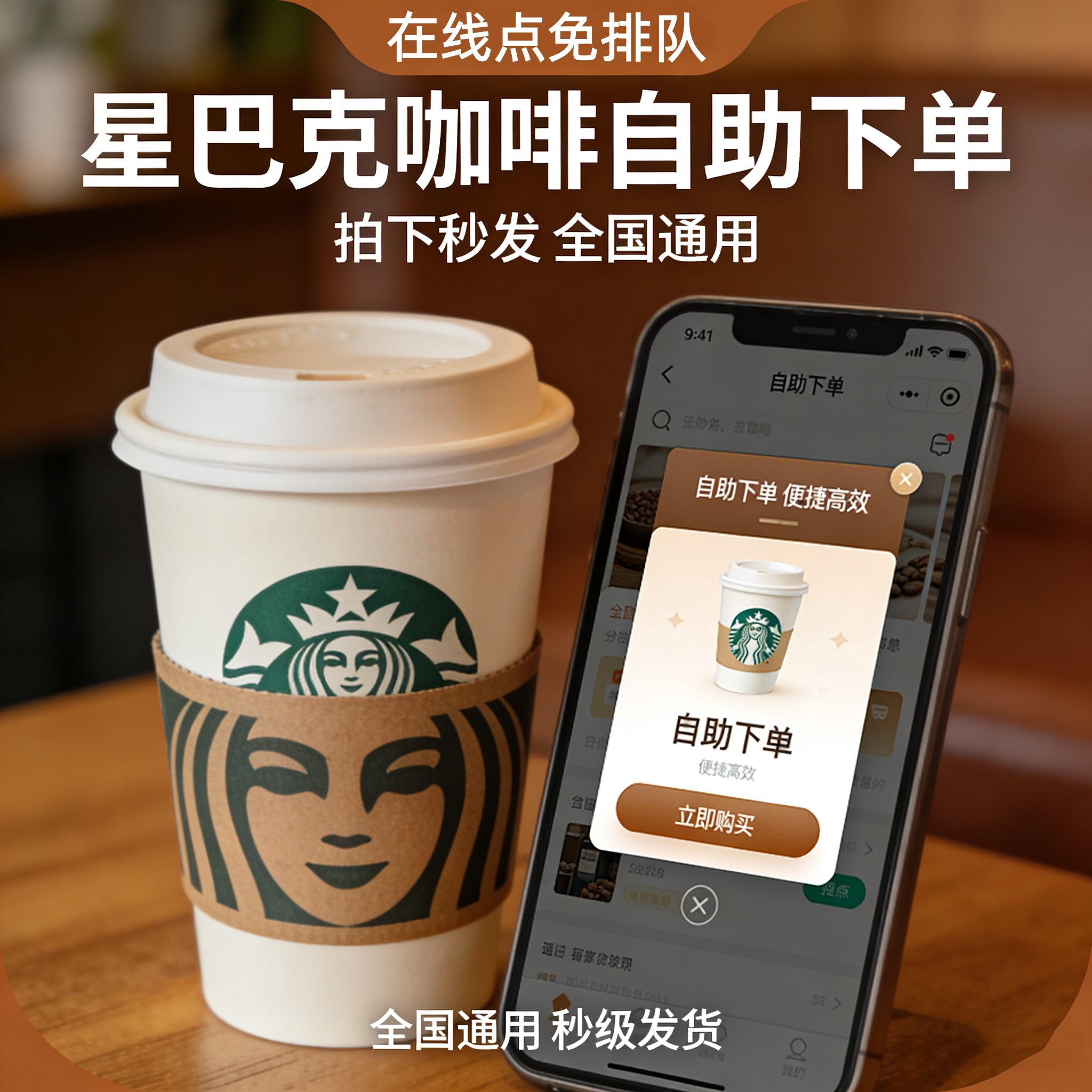 星巴克咖啡代下单啡快自主点单自取拿铁美式星冰乐电子券优惠券一