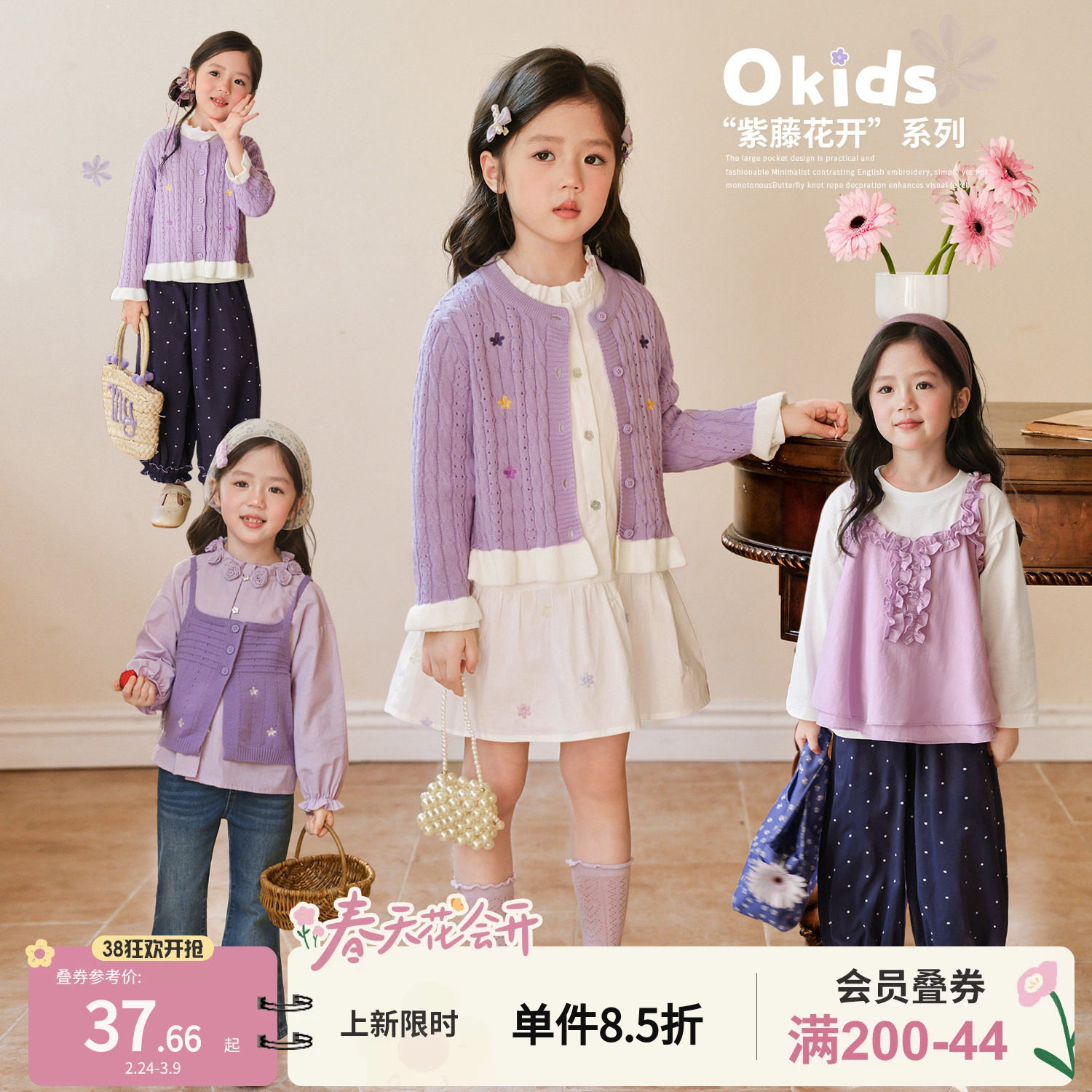 小O宝童装 宝宝紫色春装套装女花朵2026新款女童时髦洋气套装裙