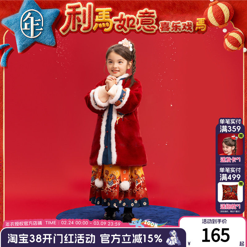 拜年服女童古风汉服冬装儿童新中式加厚毛绒外套马面裙过年服套装