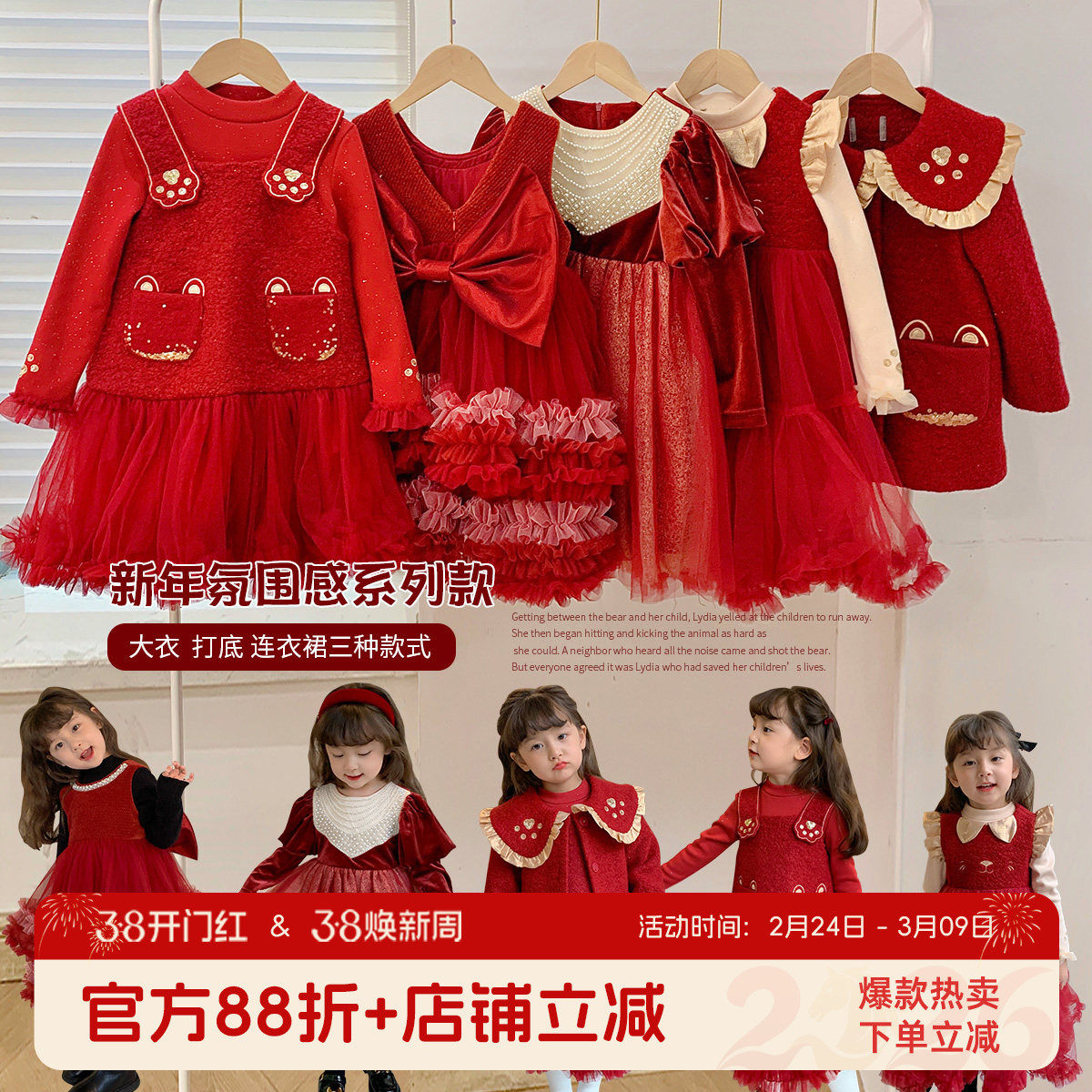 沫沫家童装女童洋气拜年服2026冬季新款儿童套装裙子宝宝冬装外套