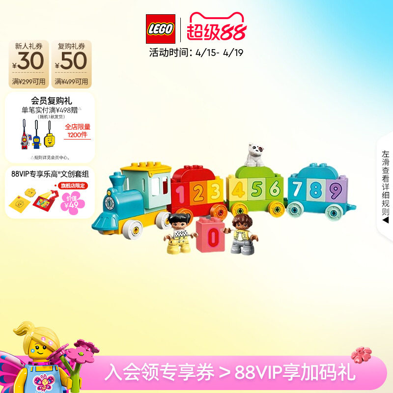 乐高官方旗舰店10954得宝数字火车学习数数大颗粒积木宝宝玩具