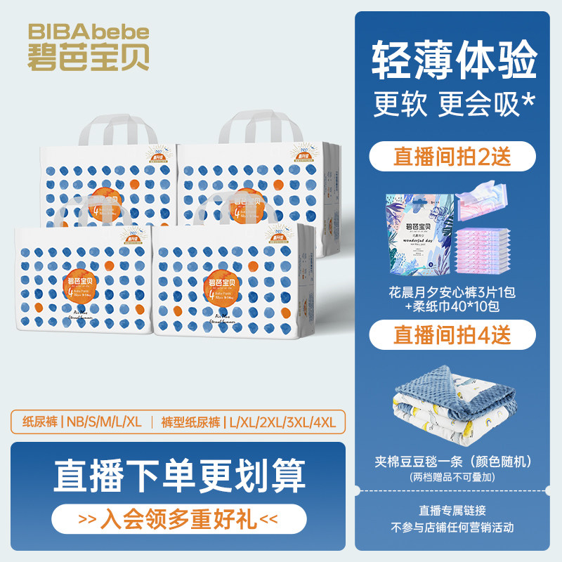 【自播】碧芭宝贝盛夏Pro夏季婴儿纸尿裤超薄透气宝宝尿不湿4包