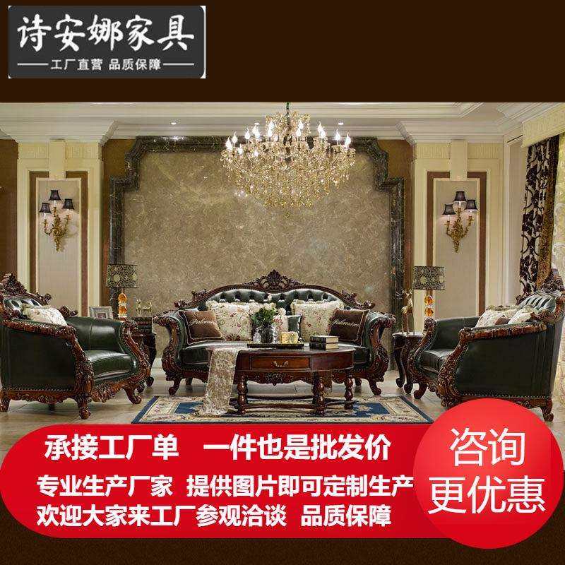 欧式皮艺沙发组合法式奢华大户型客厅家具新古典实木雕花沙发美式