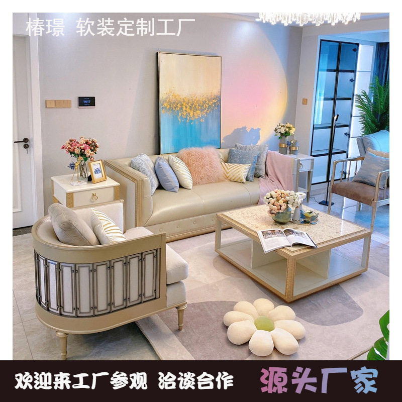 美式轻奢沙发组合套房别墅客厅法式简约高档实木皮艺沙发家具高端