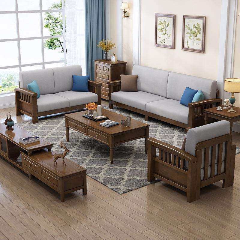 美式实木沙发123组合布艺客厅现代简约家具经济小户型双人三人位