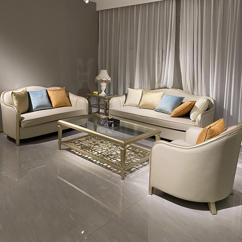 美式轻奢实木沙发组合大户型样板房客厅家具高端奢华法式皮艺沙发