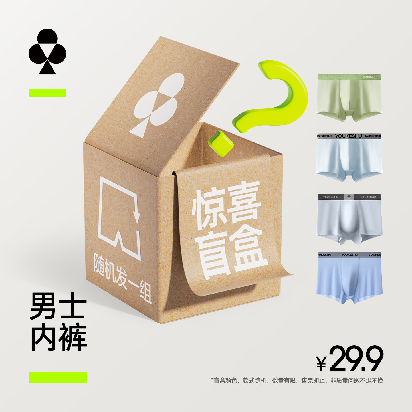 【特价盲盒】有棵树男士内裤抗菌四角裤男生平角裤短裤衩男款随机