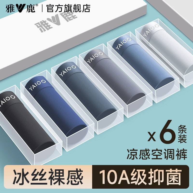 雅鹿男士内裤冰丝透气男生四角短裤头夏薄款男款平角抗菌2026新款