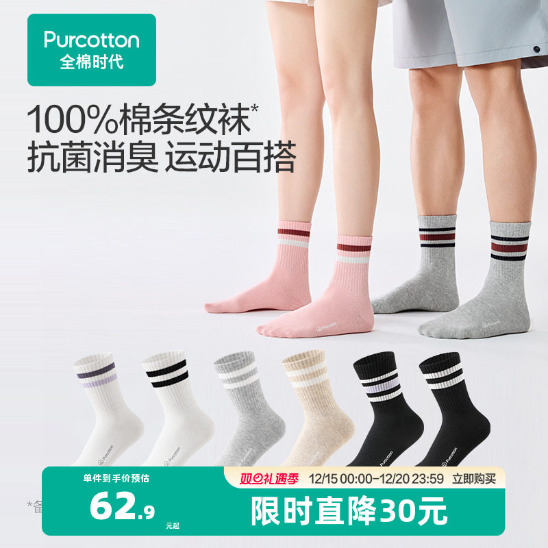 全棉时代女士袜子2025年秋季新款外搭条纹长筒袜女生纯棉袜白色袜
