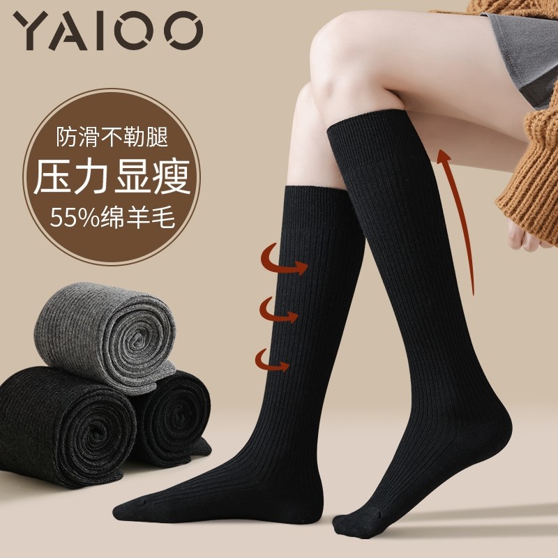 雅鹿小腿袜女秋冬款女士袜子绵羊毛保暖瘦腿小腿袜冬季爆款多规格