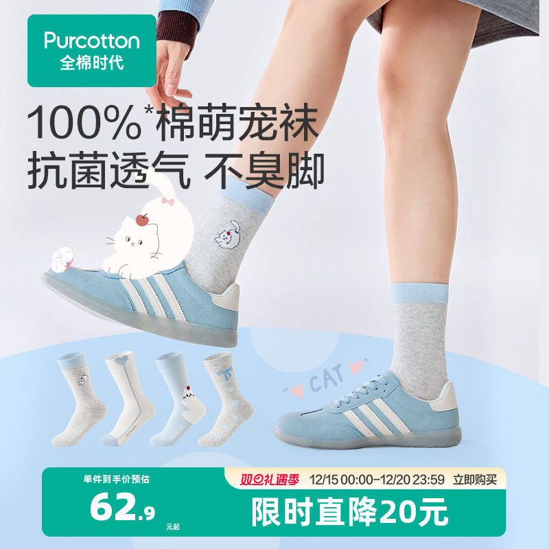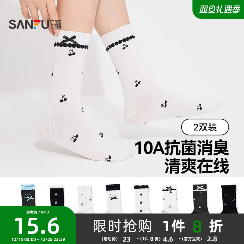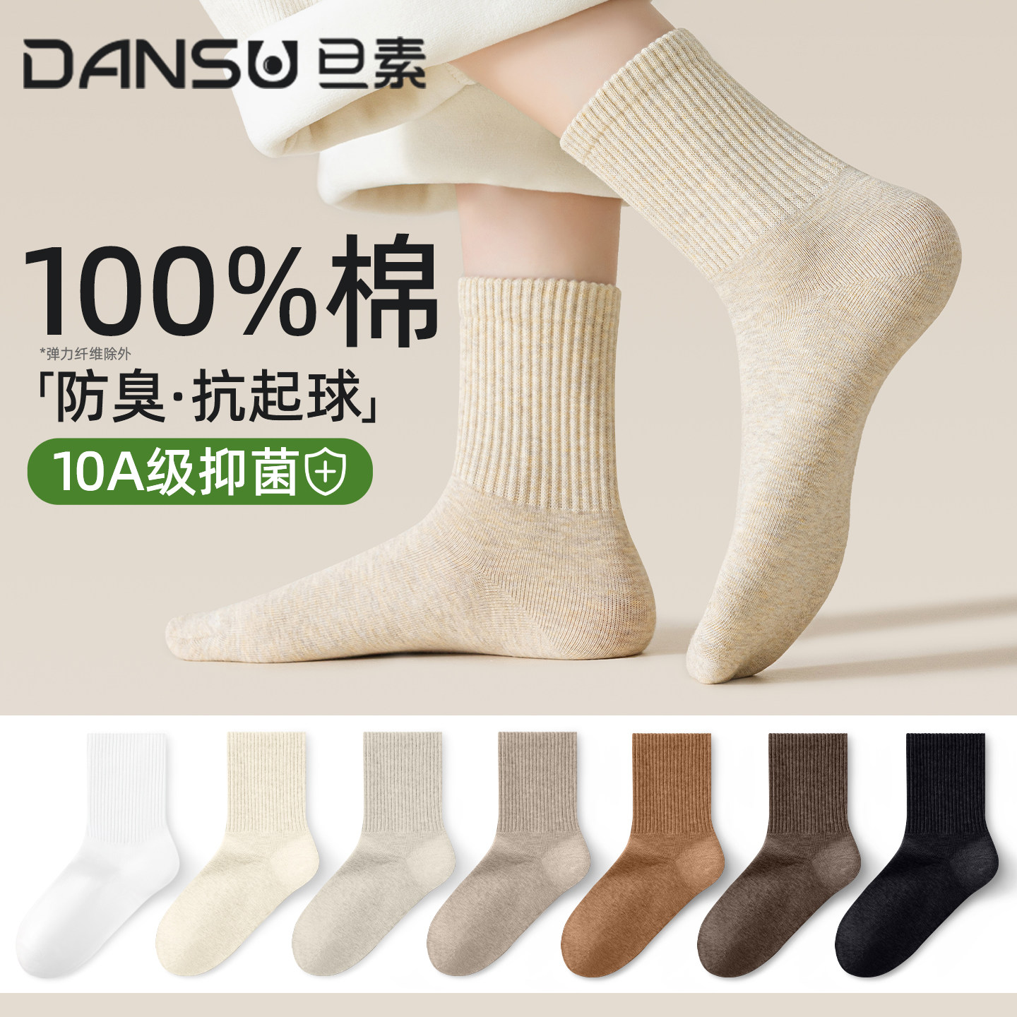 女士袜子纯棉中筒袜抗菌防臭防脚气秋冬2025新款爆款吸汗透气无骨