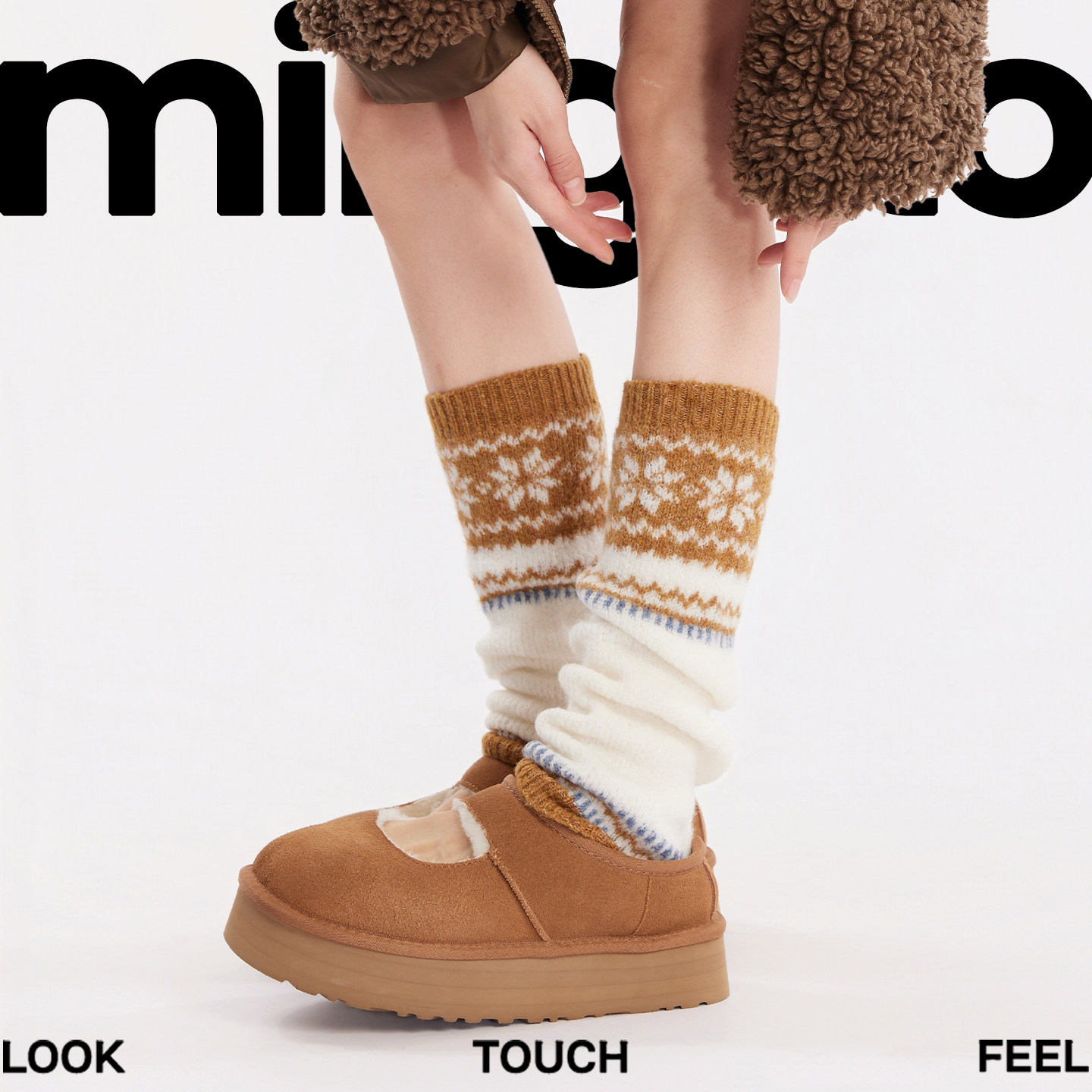 全棉时代女士袜子2025年秋季新款搭配女生长筒袜艺术袜印花外搭袜