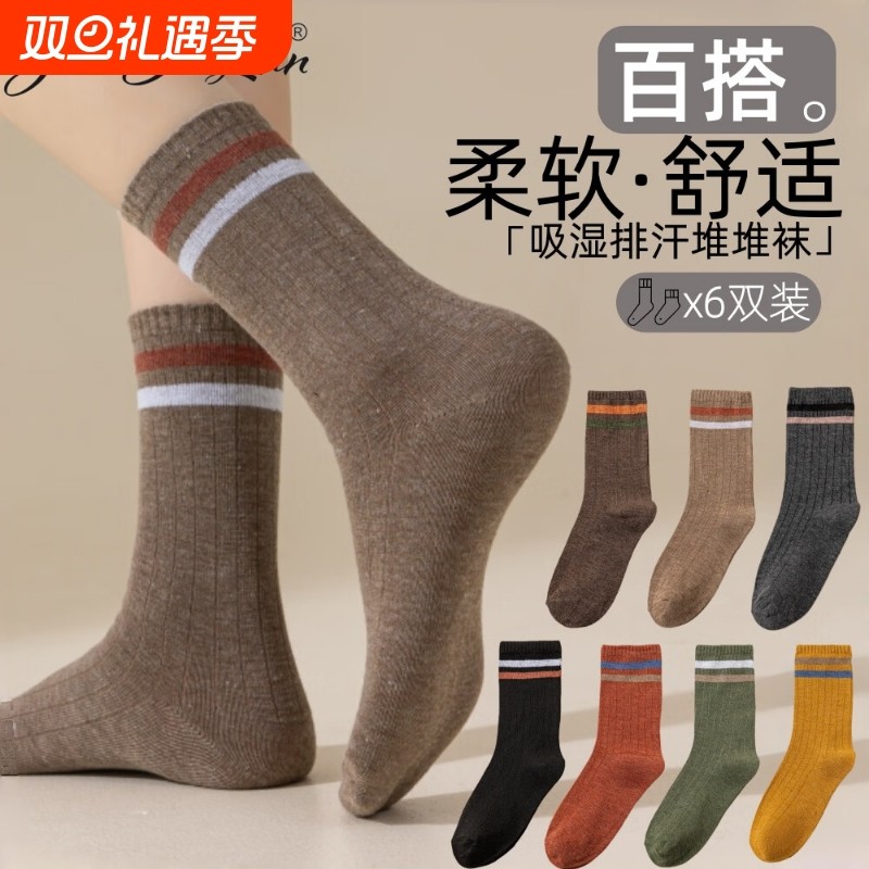 韩系中筒袜子女士纯色休闲长腰竖条纹堆堆吸汗防臭春秋款美腿月子