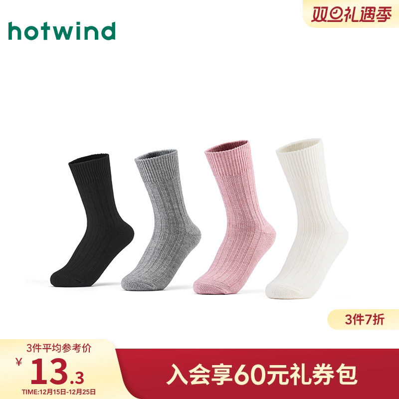 热风女士袜子2025年冬季新款粗针宽罗口高帮袜透气百搭高帮袜子