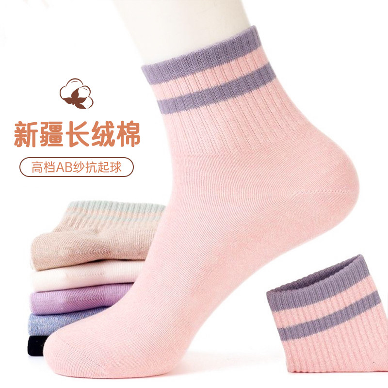 女士纯棉袜子女款秋冬季防臭运动中筒袜吸汗无骨堆堆袜抗起球长袜