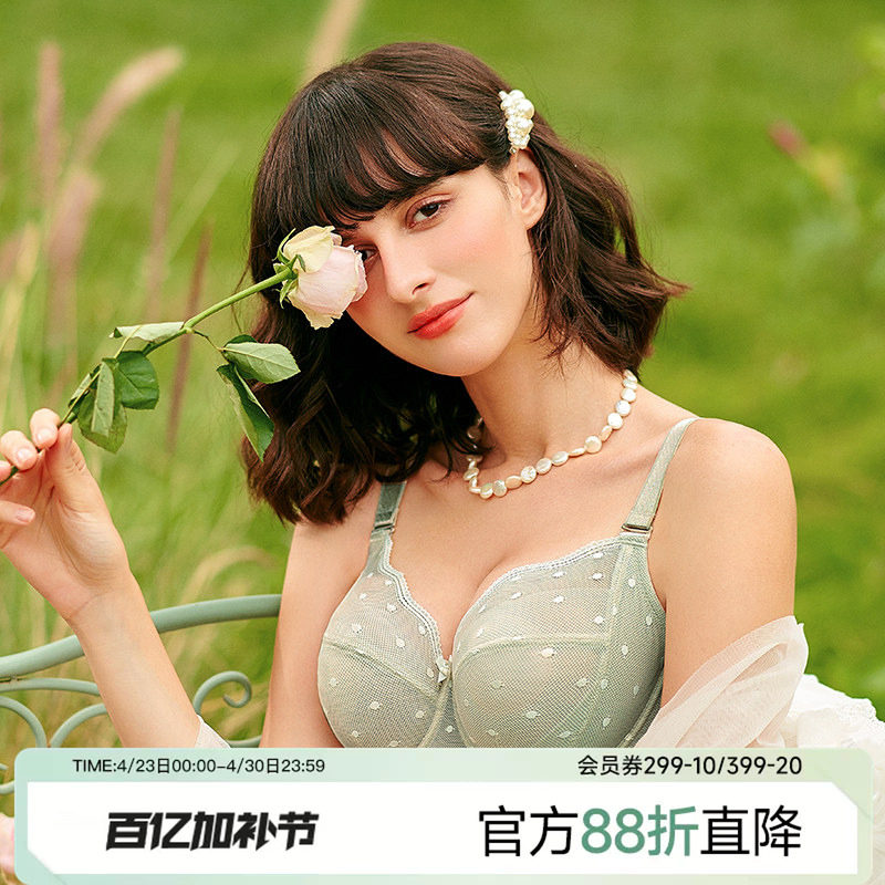 雅小姐性感内衣女春夏超薄款大胸显小文胸轻薄透气蕾丝微聚拢胸罩