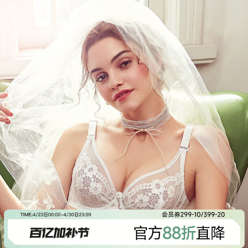 维多利亚多培尔文胸蕾丝透明纯欲性感超薄内衣女大码聚拢大胸套装